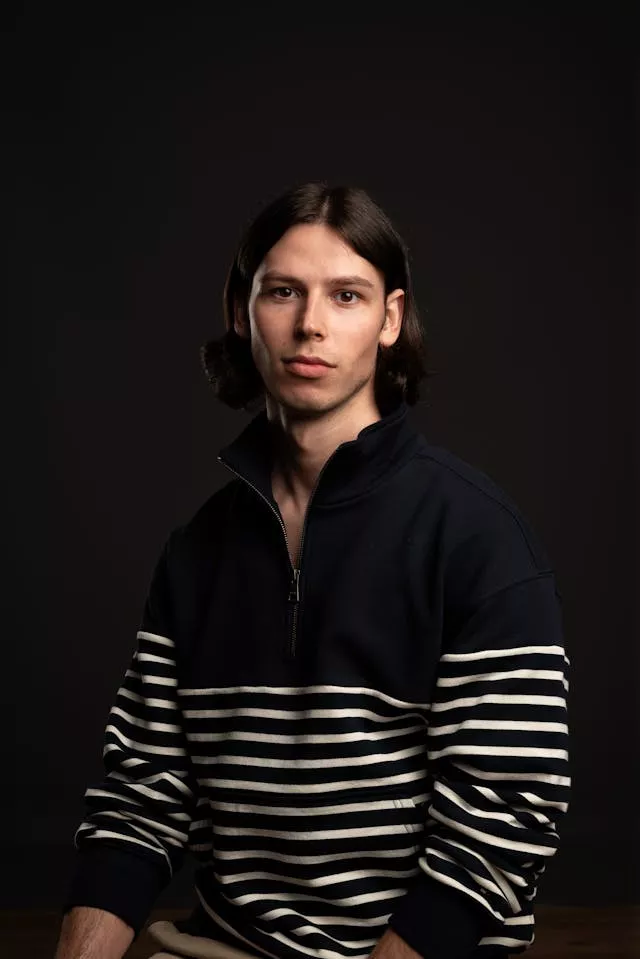 Lightweight fine-knit sweater featuring a classic striped pattern in blue/white or black/white. Perfect for a casual yet chic look, wearable all year round.